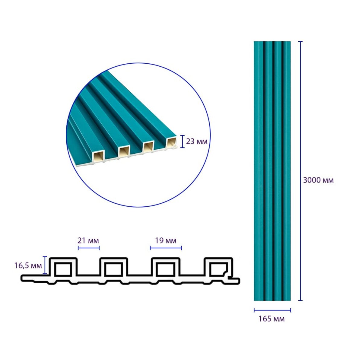 Рейка декоративна WPC стінова 3000х165х23мм Темна бірюза SW-00001863