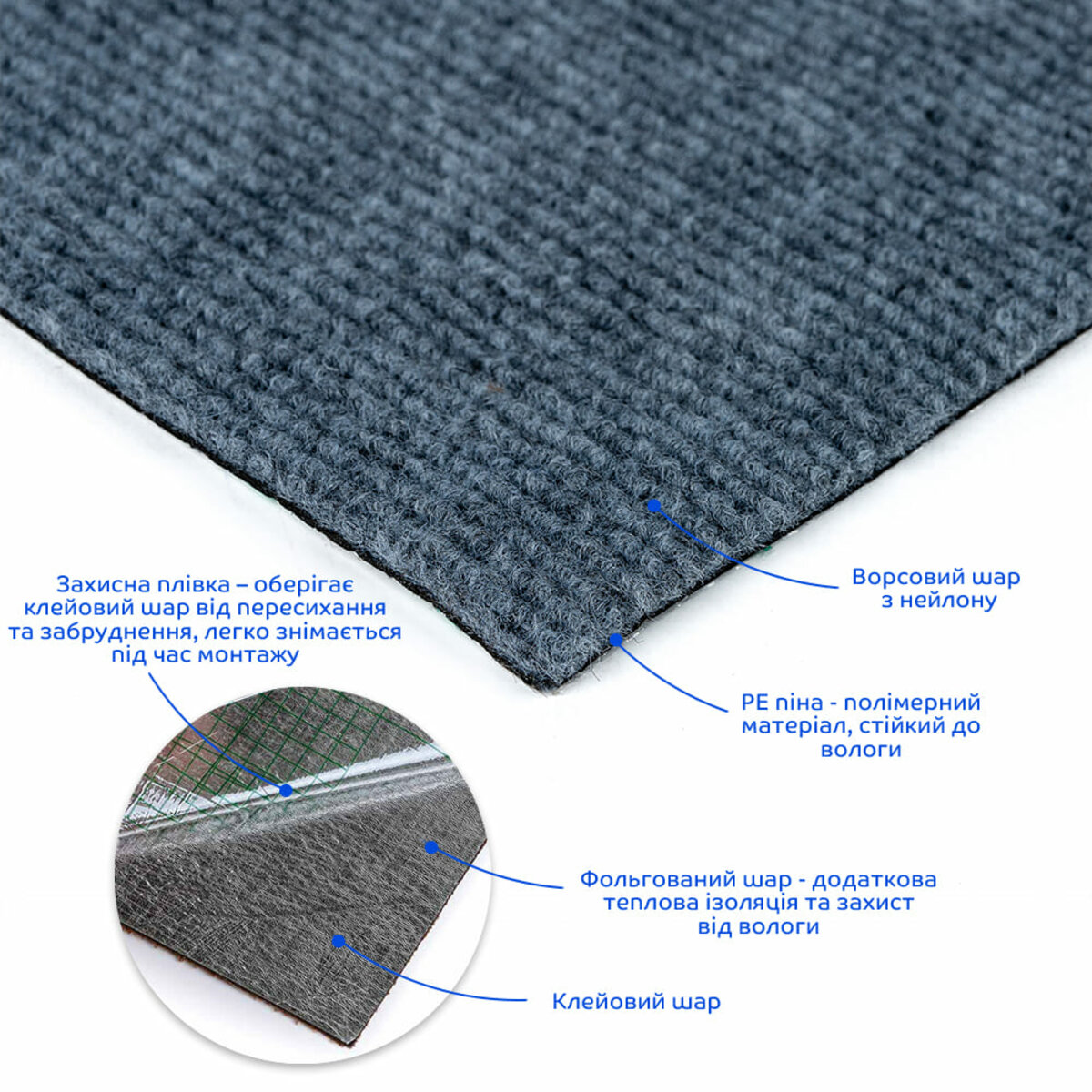 Самоклеюча плитка під ковролін в рулоні сірий 600х3000мм SW-00002584